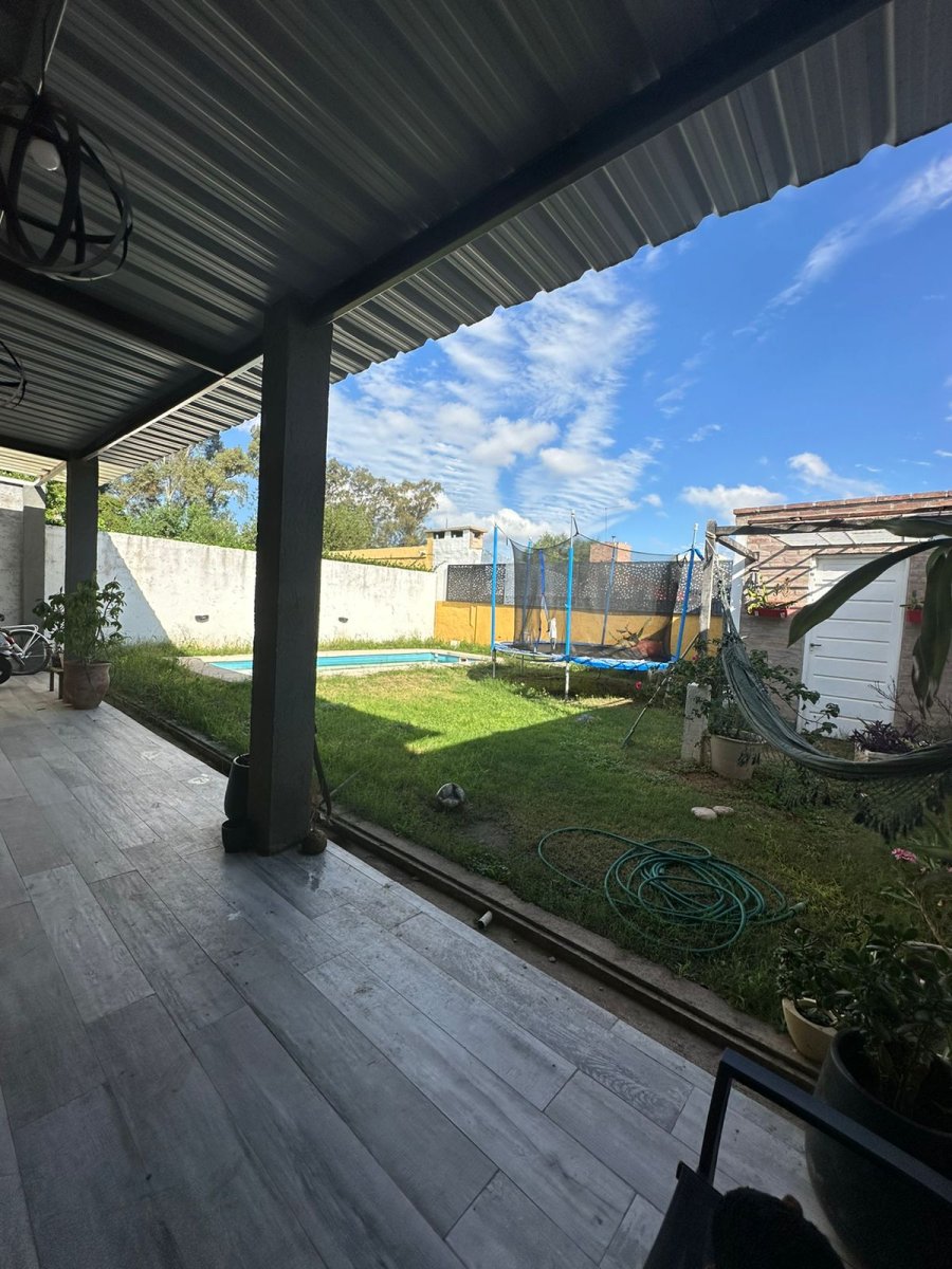 La propiedad se desarrolla en una planta y ofrece 3 dormitorios 🛏️, uno principal con vestidor amplio 👗, 1 baño completo 🚿 con mampara fija de vidrio y vanitory de madera, y una cocina con comedor diario funcional 🍽️ totalmente amoblada con muebles de primera calidad tanto alacena como bajo mesada. El corazón social es una cochera/quincho súper cómoda para 2 autos bajo techo 🚗🚗, con portón automatizado ⚙️, ideal para reuniones.